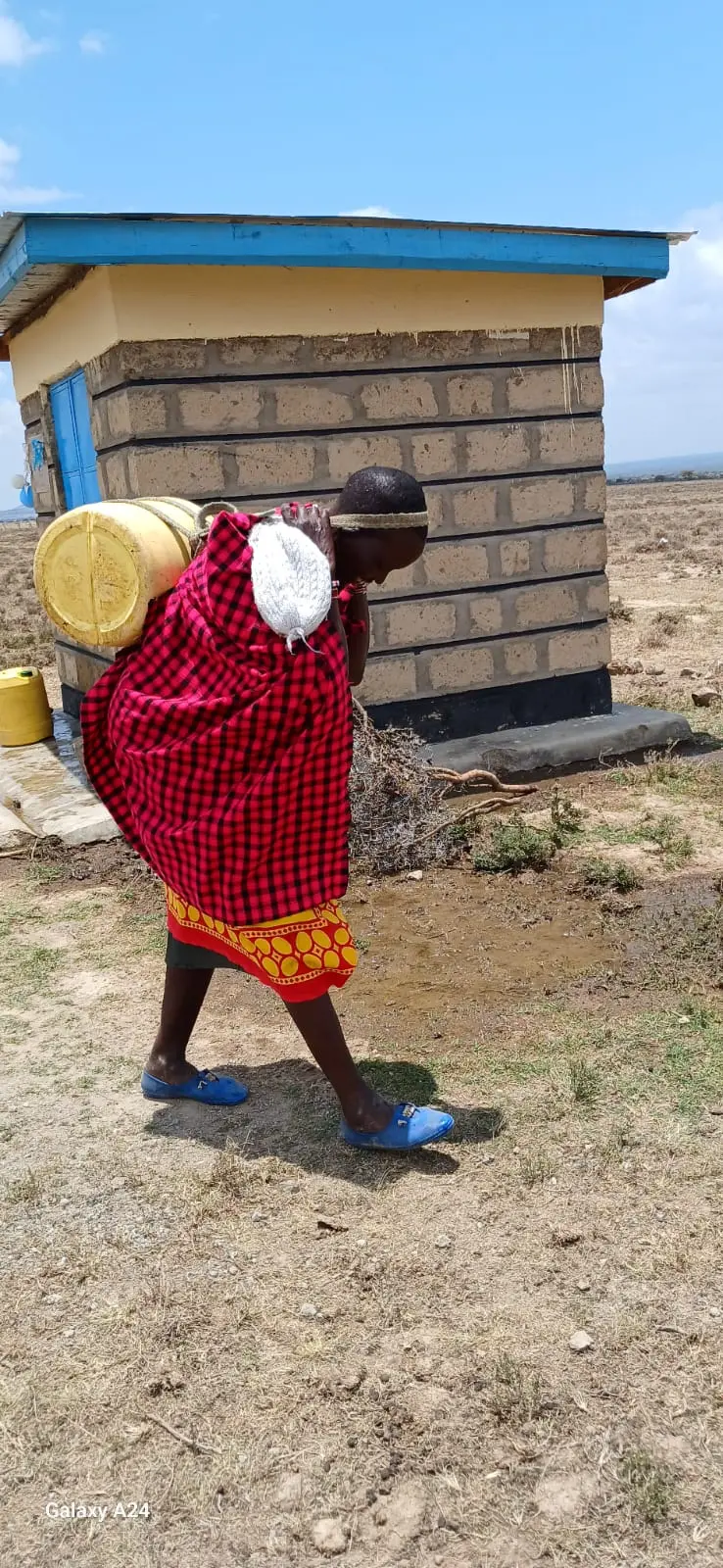 Shortly after, Elizabeth from World Serve International inaugurated a 130-meter-deep borehole that yields 3,000 liters of water per hour, equipped with two 10,000-liter tanks. Currently being upgraded to a hybrid system for continuous water supply, this project symbolizes resilience, providing reliable water and renewed hope to the village.