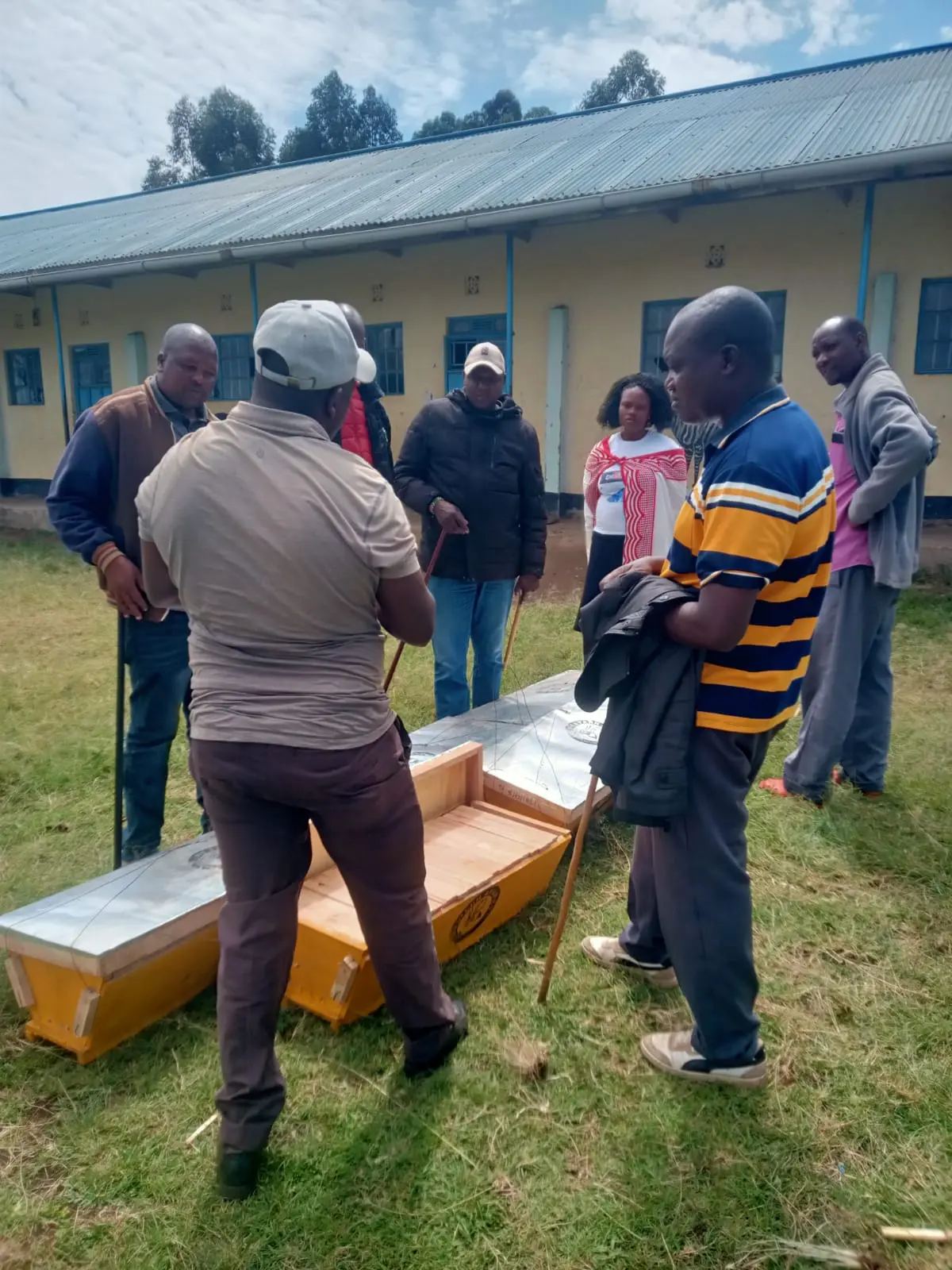 Meanwhile, the beekeeping group received six modern beehives, with one member generously offering part of her land for installation. To ensure success, the project engaged an agricultural expert from KALRO to train members on modern beekeeping practices. Their dedication is already bearing fruit, as all six hives are now fully colonized by bees. The group anticipates their first honey harvest by January or February 2026—a milestone that promises both income and improved household nutrition.